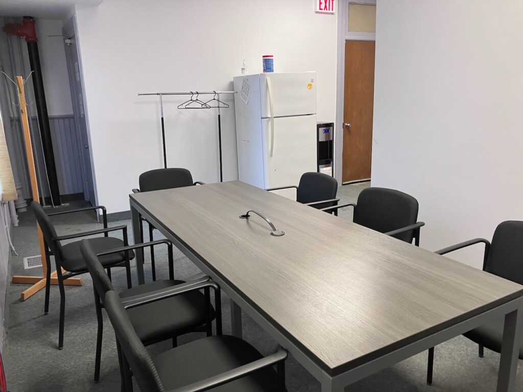 The staff lunch room on the first floor is available as a green room for performances. Washrooms and a kitchenette are attached to the green room. Back stage stairs access the green room.